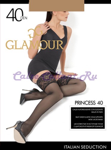 Чулки GLAMOUR Princess 40. Шелковистые эластичные чулки с широкой кружевной резинкой на силиконовой основе и прозрачным укрепленным мыском.